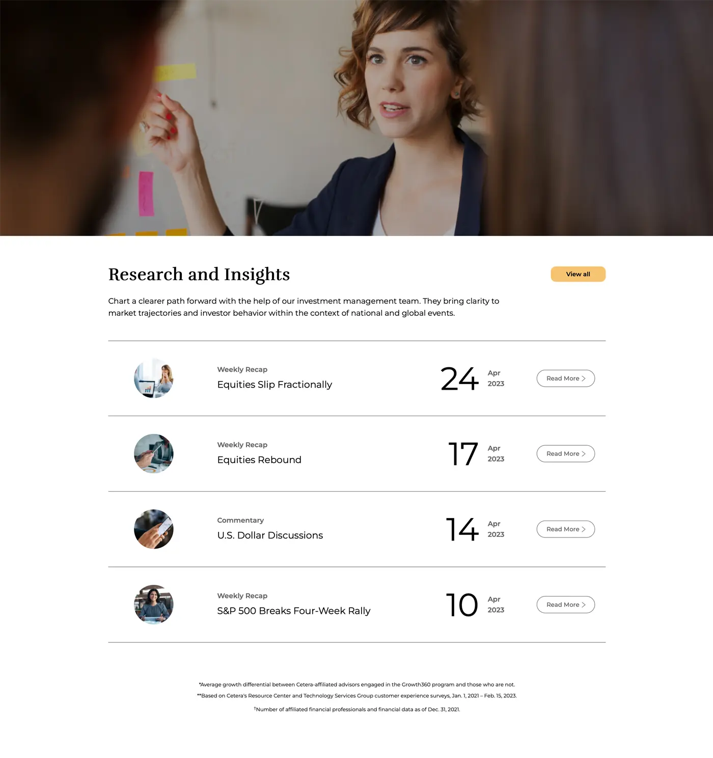 Cetera Financial Group Wireframing, UI and UX Design Start with wireframing a master plan for the whole county public-facing websites and continue with UI design, perfecting it by best practices, user experience methods, and following ADA compliance. ToolsPhotoshop, Figma, Adobe XD Categories UI/UX Copyright Cetera Financial Group LAUNCH